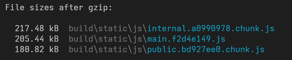 这里我们把 /feeds 和 /about 两个公共页面合并到一个名为 "public" 的分块中,另外 /user 和 /setting 合并到一个名为 "internal" 的分块中。
